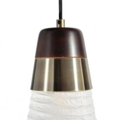 Create a striking conversation piece with this Sunset 3-light pendant in weathered brass. Your cozy dining room or seating area will achieve the Zen feel you desire with this design inspired by the Japanese Toro Nagashi lantern festival. The eclectic mixture of natural hardwood and handcrafted Sumi paper with the antique brass accents make this pendant light of 3 ascending lanterns a true conversation piece. The soft lighting and casual styling invites guests to feel welcome. Material: hardwood, steel, Sumi paper. Inspired by the Japanese Toro Nagashi lantern festival. Soft ambient lighting, 3-light pendant. Hand crated in wood, steel and Sumi paper. Perfect for contemporary, transitional and eclectic environments. Fits in a range of living environments.