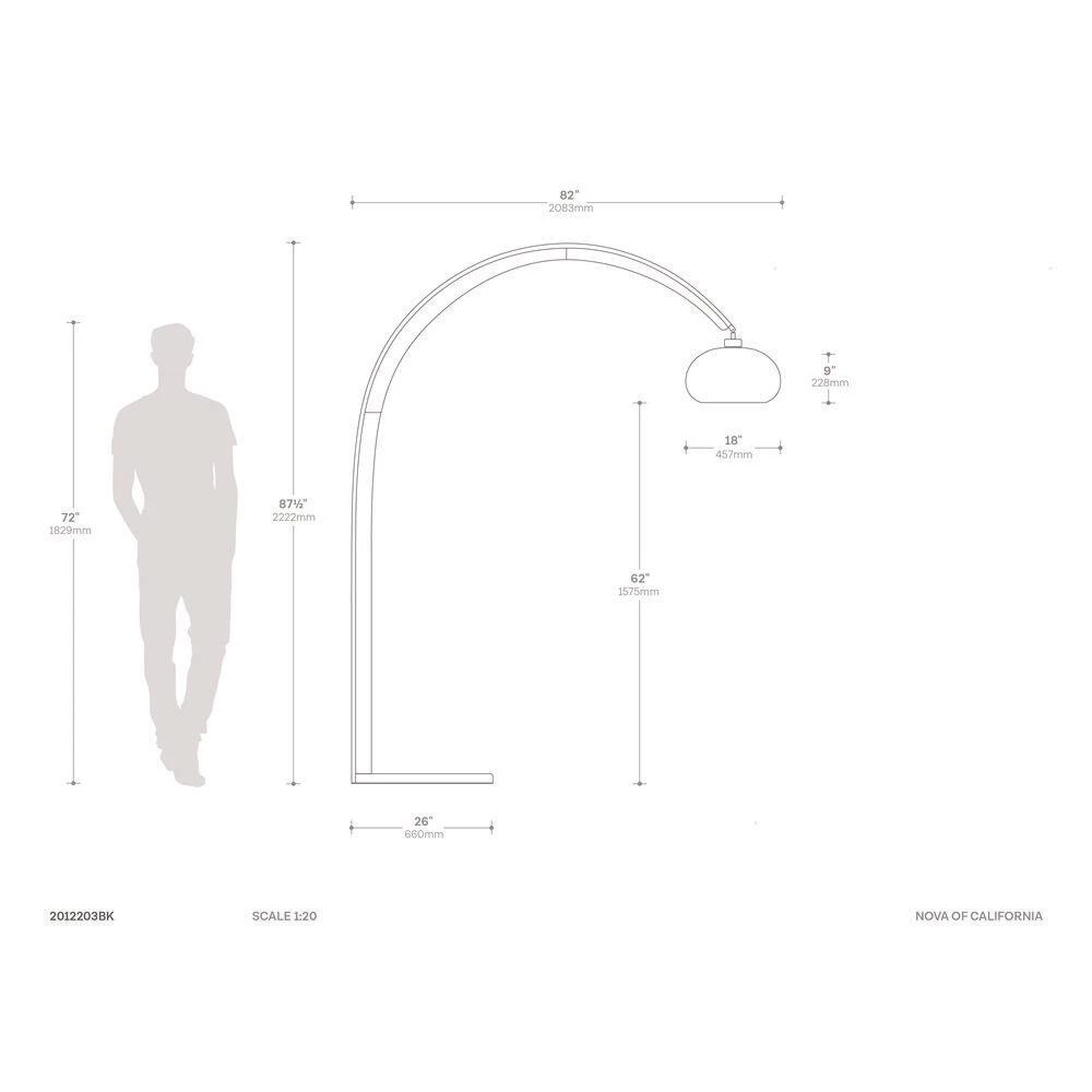 The Vaulted 1-light Arc Lamp is a stately, oversized mid-century showpiece created by the former chief designer at Nova, Peter Morelli. Peter was trained in Vienna, Austria as a jewelry and lighting designer. His original lighting pieces are frequently found fetching thousands of dollars at auction. The Vaulted Arc Lamp, originally created by Peter in 1968 and updated for today’s technology, is still crafted from bentwood with a molded acrylic shade and has been updated with the use of LED lighting. The convenient dimmer switch allows the user to control the level of light output. When used in conjunction with a smart switch, Vaulted is compatible with Google Assistant, and Apple Home, and can be automatically turned on/off manually, by voice activation, or by scheduled settings.